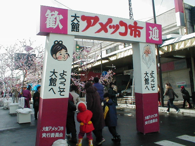恒例の「アメッコ市」が秋田県大館市で2月9日・10日に開催されました。 今年は前日まで暖かかったのですが、白髭大神も吹雪をついて山からアメを買いに来ると言われている通り、 アメッコ市当日は冷え込んで風も強く時折吹雪にあおられながらのアメッコ市になりました。 「大館アメッコ市」…414年前から続いている民族行事で両日は大町中央通りに150店をこえるアメ屋が軒を連ねます。 …皆さんお誘いの上、来てたんしぇ